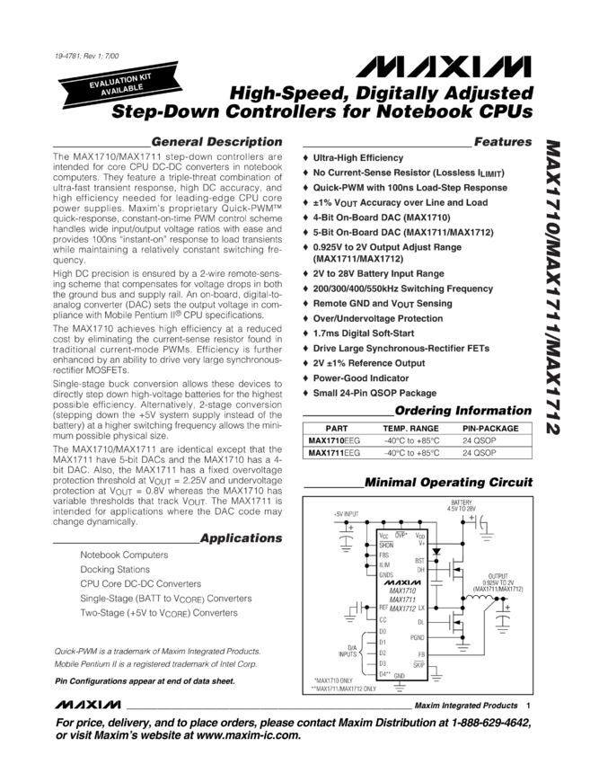 MAX1710, MAX1711, MAX1712 High-Speed, Digitally Adjusted Step-Down Controllers for Notebook CPUs
