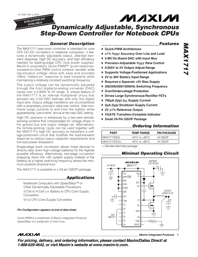 MAX1717 Dynamically Adjustable, Synchronous Step-Down Controller for Notebook CPUs