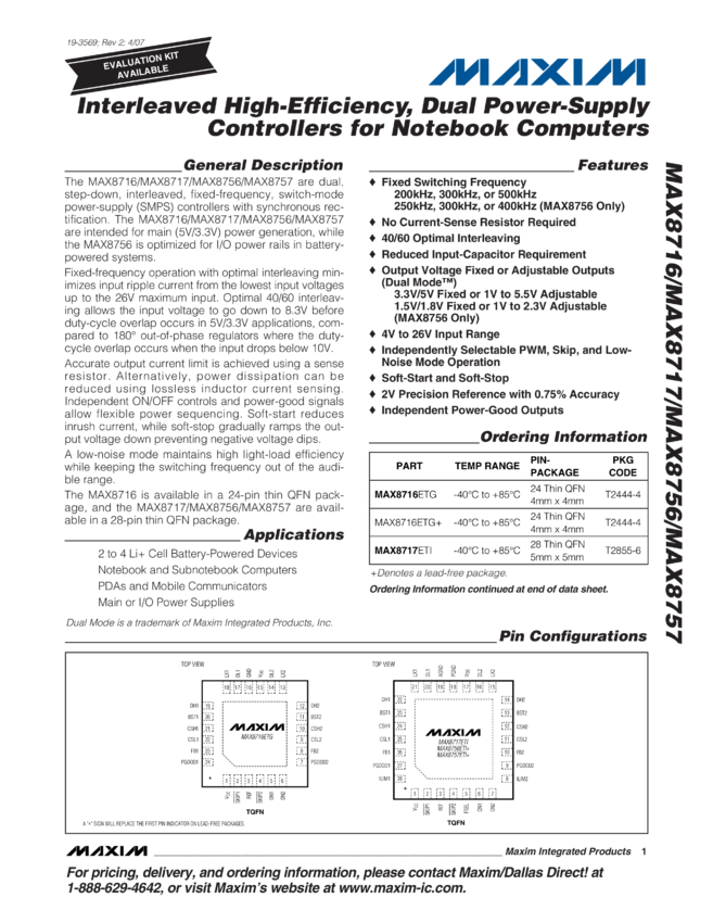 MAX8716, MAX8717, MAX8756, MAX8757 Interleaved High-Efficiency, Dual Power-Supply Controllers for Notebook Computers