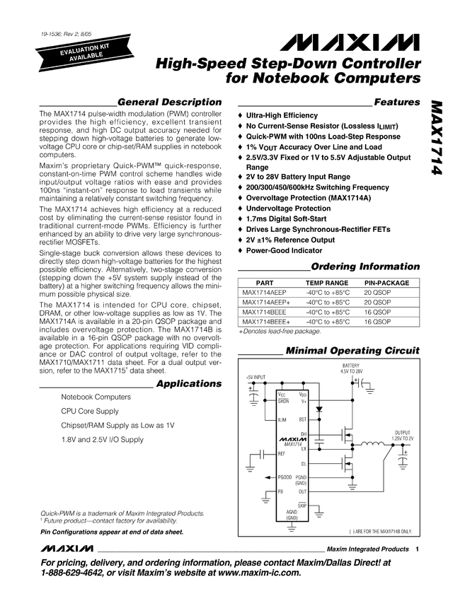 MAX1714, MAX1714A, MAX1714B High-Speed Step-Down Controller for Notebook Computers