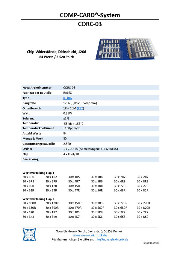 Zestaw rezystorów Chip 0603 1R - 10M - 1 %