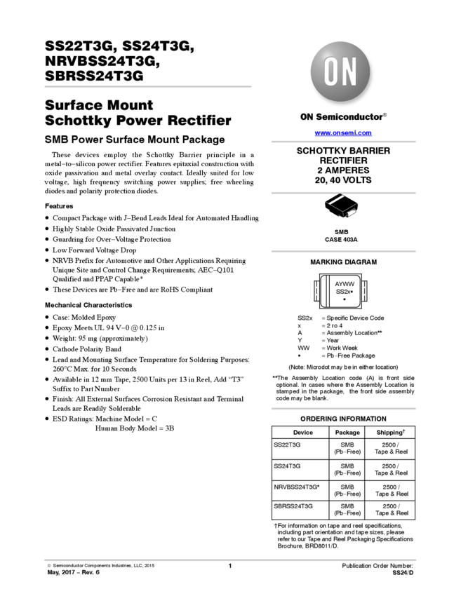 Diode Schottky 40V 2A 2-Pin SMB T/R