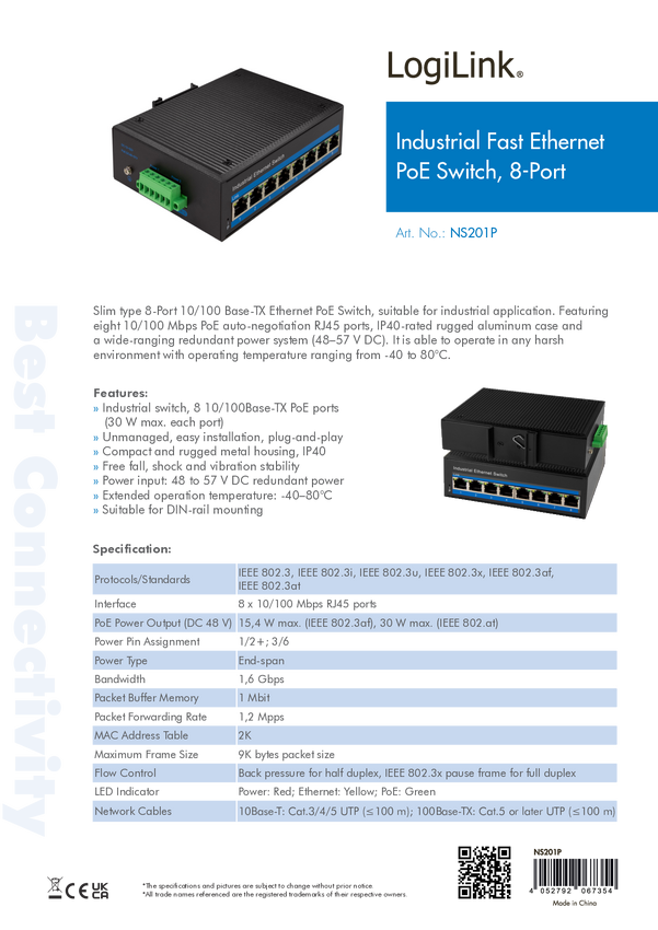 Przemysłowy switch Fast Ethernet PoE, 8 portów, 10/100 Mbit/s