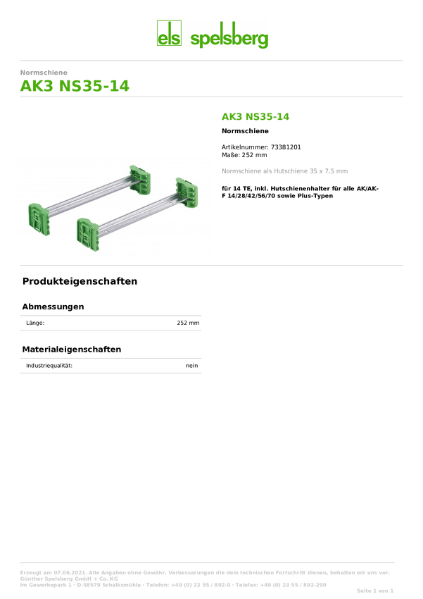 Spelsberg AK3 NS35-14 73381201 perforowana stal 252 mm 1 szt.