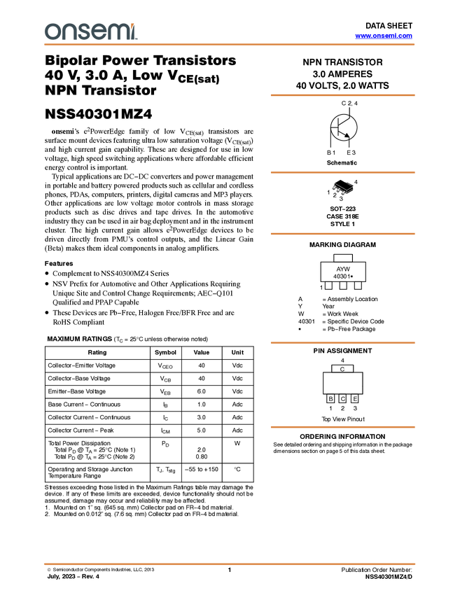 40 V, 3.0A Low VCE(sat) NPN Transistor