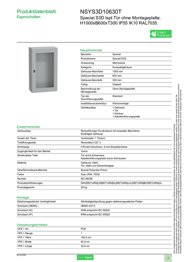 Schneider Electric PanelSeT S3DB NSYS3D10630 Szafka instalacyjna 600 x 1000 x 300 stal szary 1 szt.