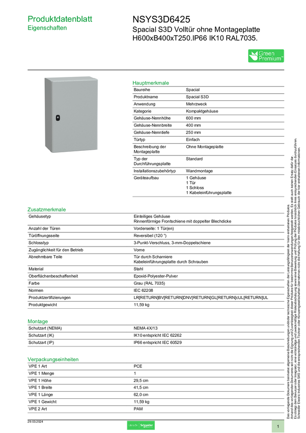 Schneider Electric PanelSeT S3DB NSYS3D6425 Szafka instalacyjna 400 x 600 x 250 stal szary 1 szt.