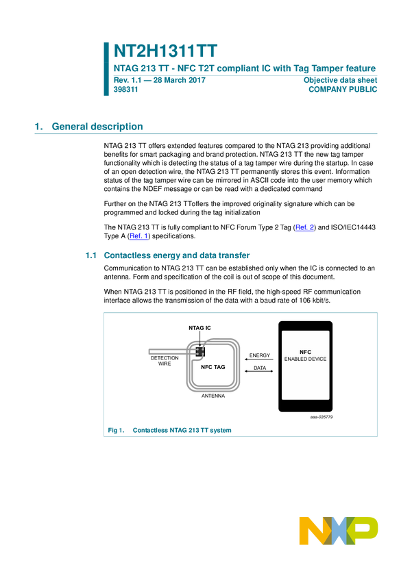NTAG<sup>&reg;</sup> 213 TagTamper: NFC T2T Compliant IC with TagTamper Feature