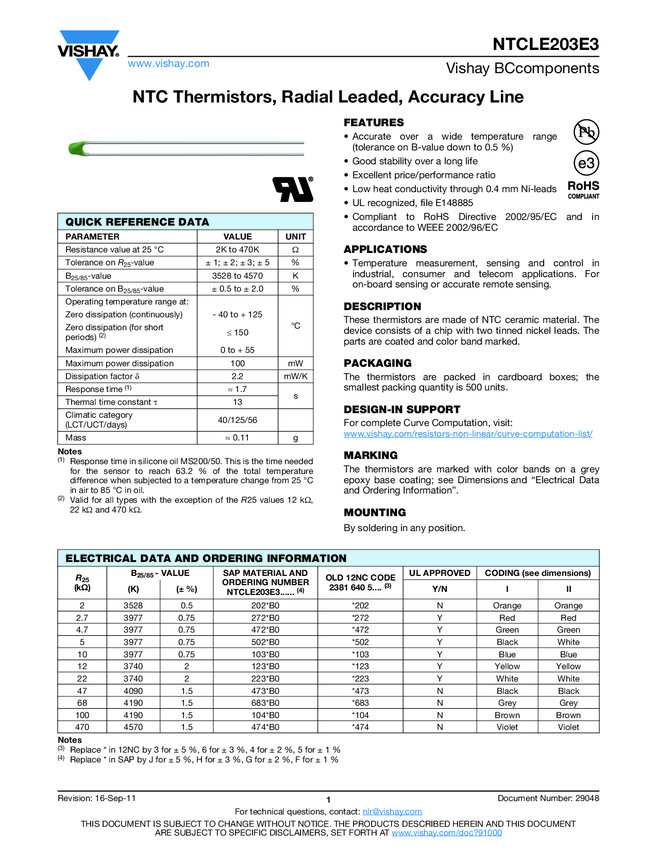 NTC Thermistors, Radial Leaded, Accuracy Line