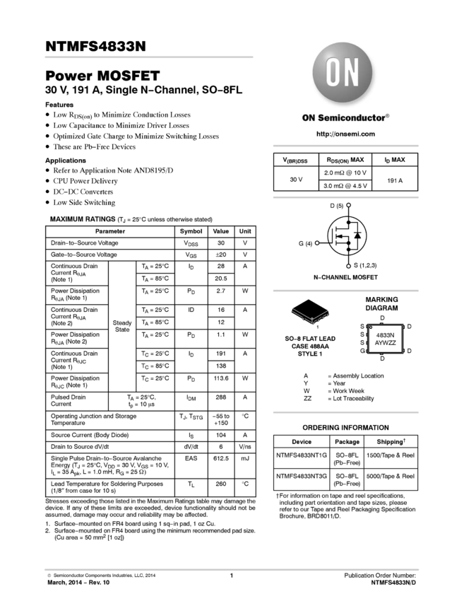 MOSFET, Single N-Channel 30V, 191A, 2mΩ
