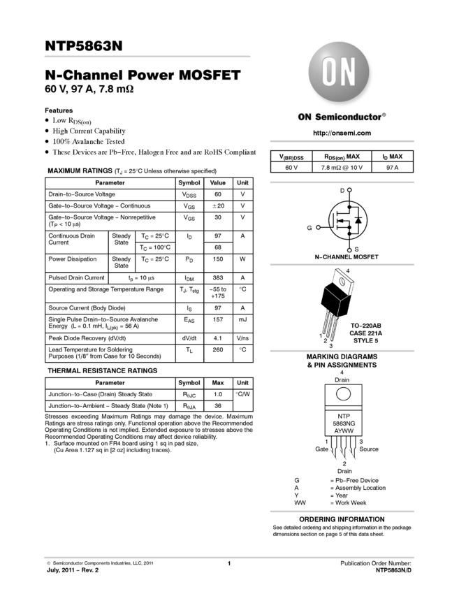 Power MOSFET 60V 97A 7.8 mOhm Single N-Channel TO-220
