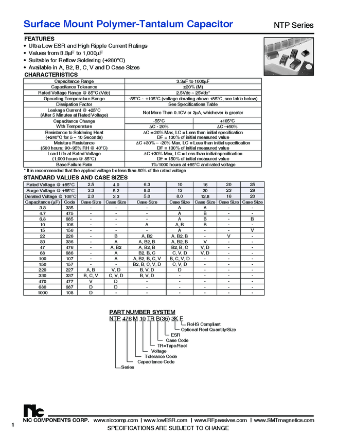 Cap Tant Solid 470uF 4V D CASE 20% (7.3 X 4.3 X 2.8mm) SMD 7343 0.025 Ohm 105°C T/R
