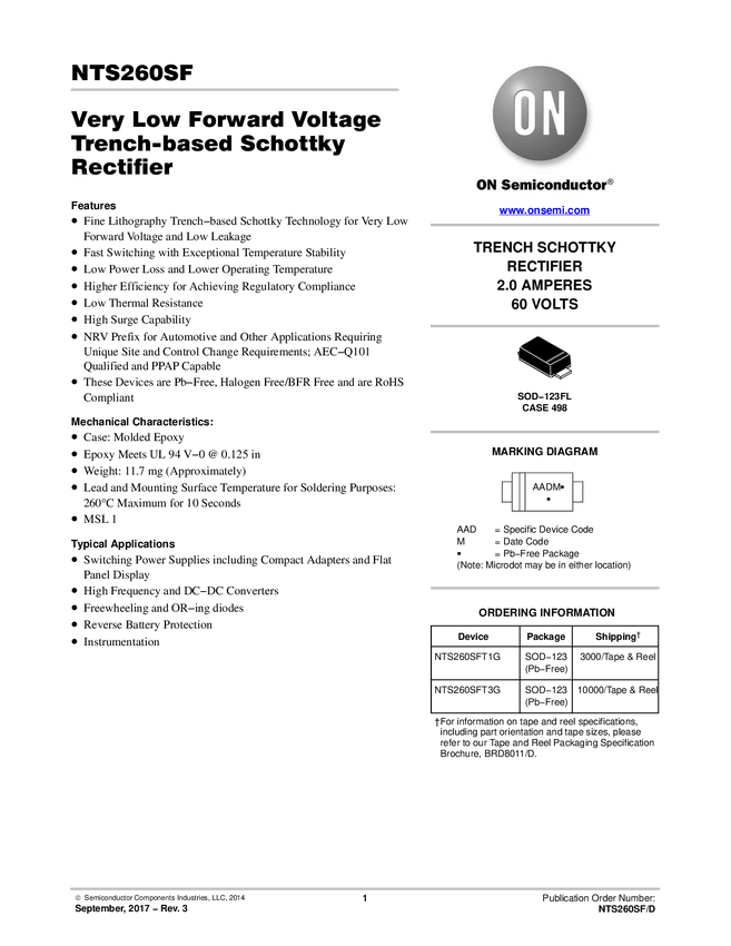 Trench Schottky Rectifier, Very Low Leakage 2A, 60V in SOD123 package