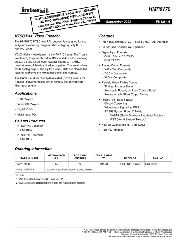 NTSC/PAL/SECAM Video Decoder with Component Input and Progressive Output Support