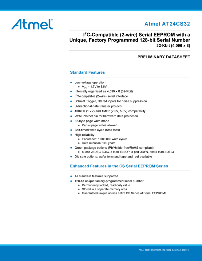 32Kb I²C-compatible 2-wire Serial EEPROM with 128-bit serial number
