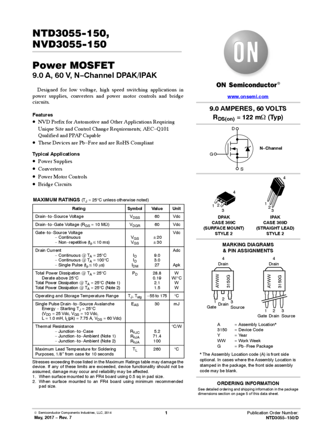 Power MOSFET 60V 9A 150 mOhm Single N-Channel DPAK