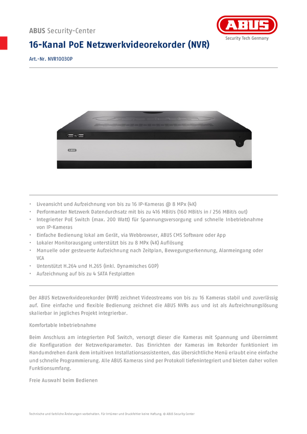 Rejestrator wideo sieciowy ABUS NVR10030P