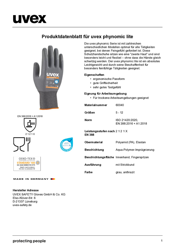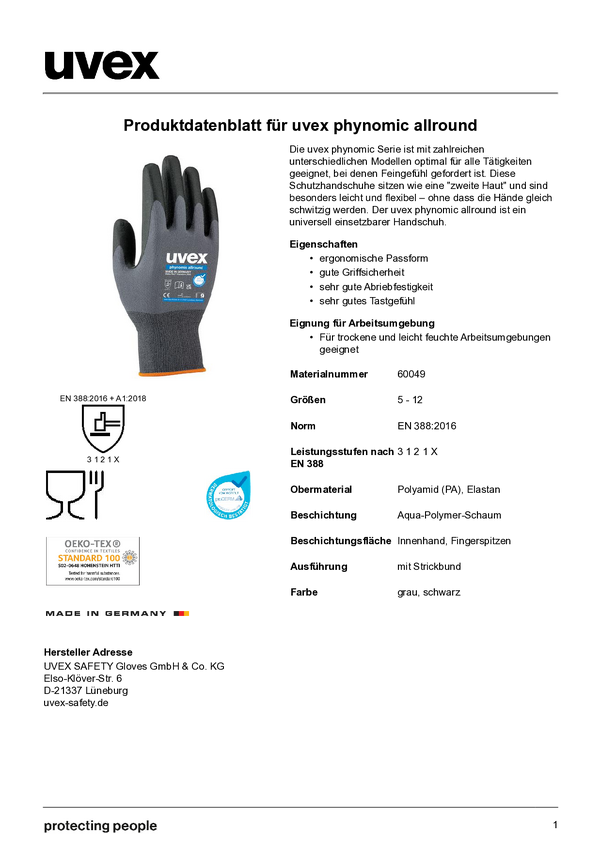 uvex phynomic allround 6004905 Nylon Rękawice robocze Rozmiar rękawic: 5 EN 388 1 par(a)