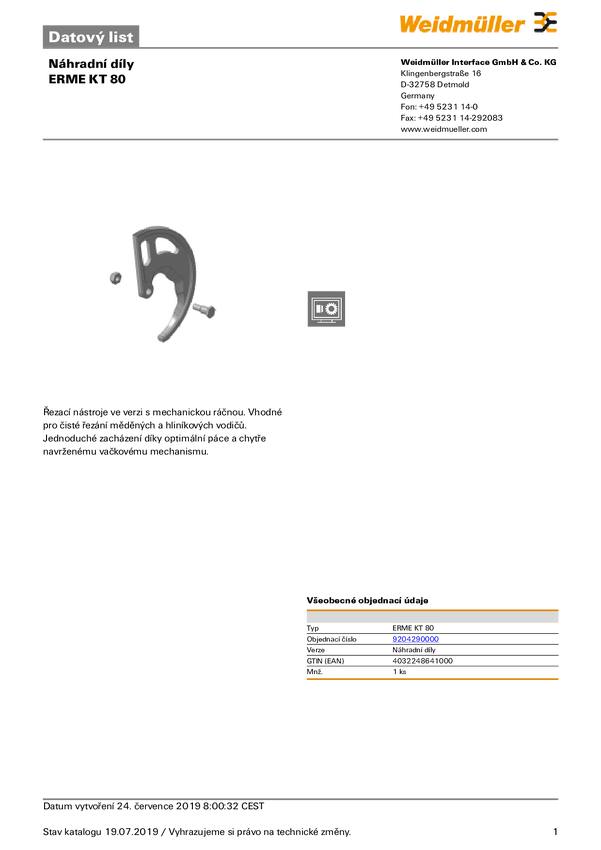 Weidmüller ERME KT 80 9204290000 Ostrze obcinaka do kabli Odpowiedni do kabli aluminiowych lub miedzianych, jedno i wiel