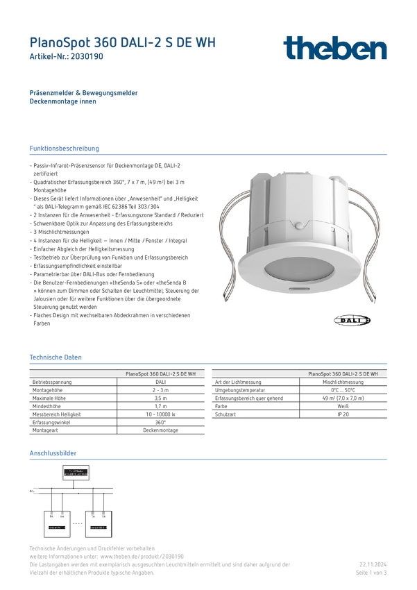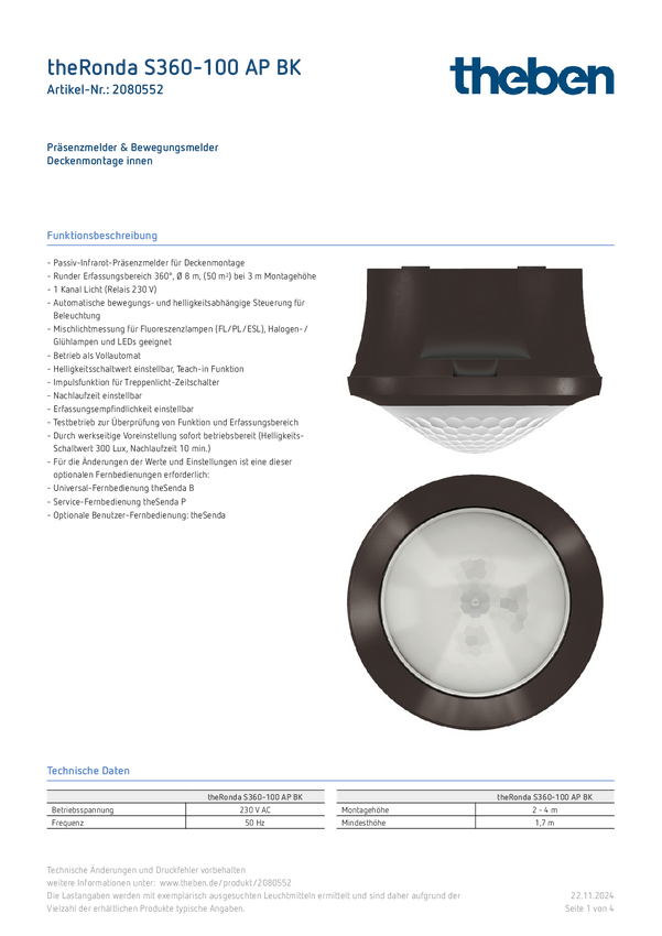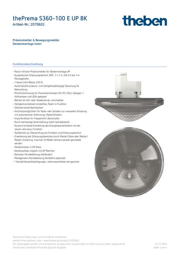 Detektor obecności Theben 2080540 theRonda S360-100 FLAT DE WH