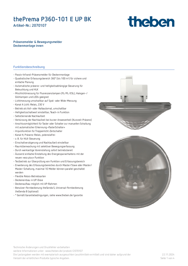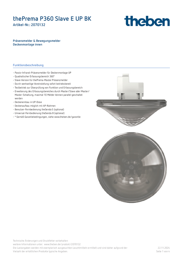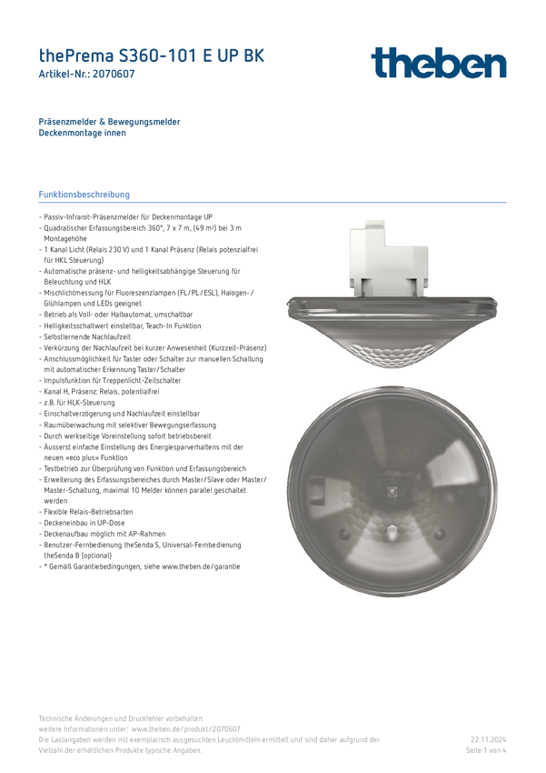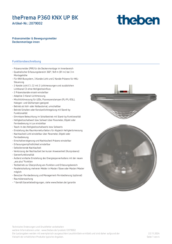 Detektor obecności Theben 2079002 thePrema P360 KNX UP BK