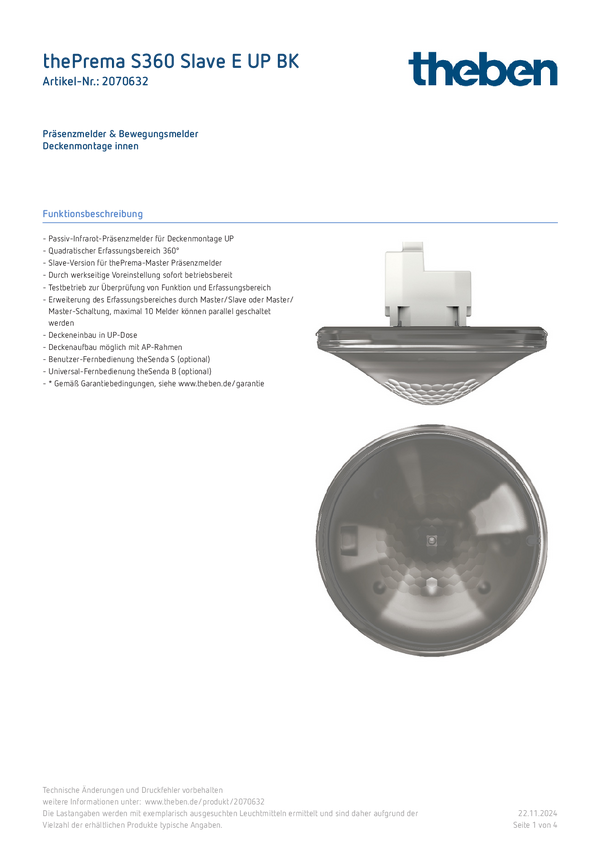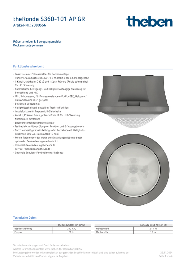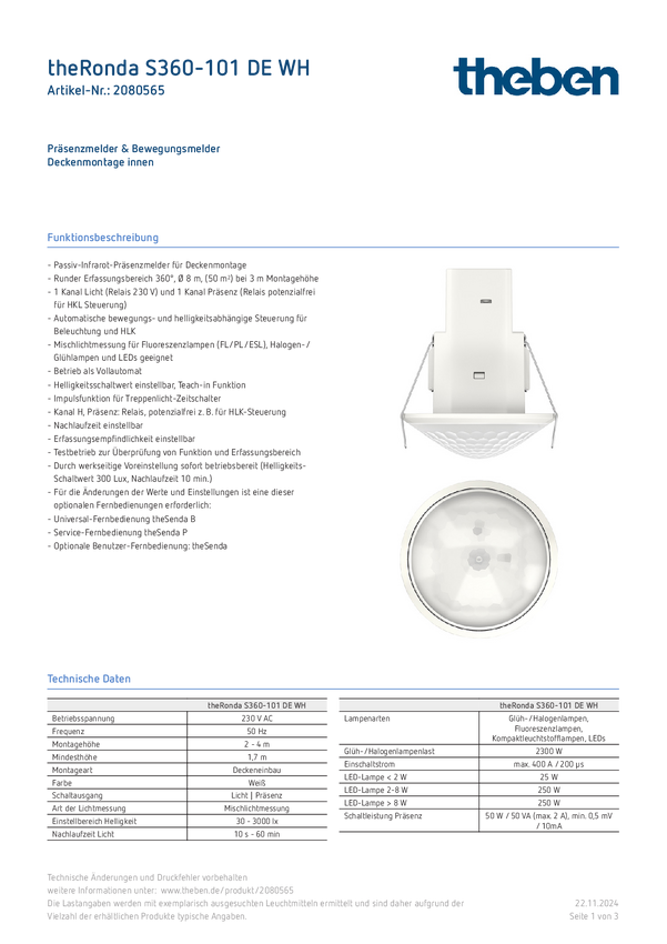 Detektor obecności Theben 2080545 theRonda S360-101 FLAT DE WH