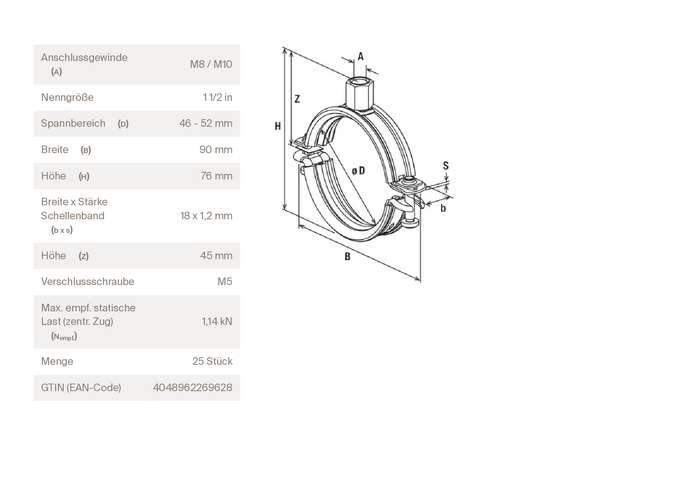 SWG 54010955 Opaska zaciskowa Obejma do wysokich ciśnień 25 szt.