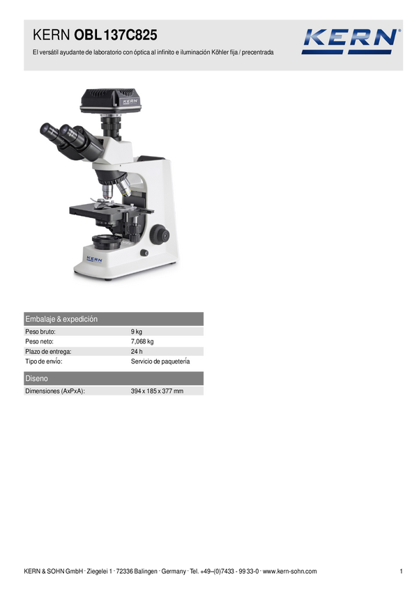Kern OBL 137C825 OBL 137C825 Mikroskop światła przechodzącego trzyokularowy 1000 x światło przechodzące