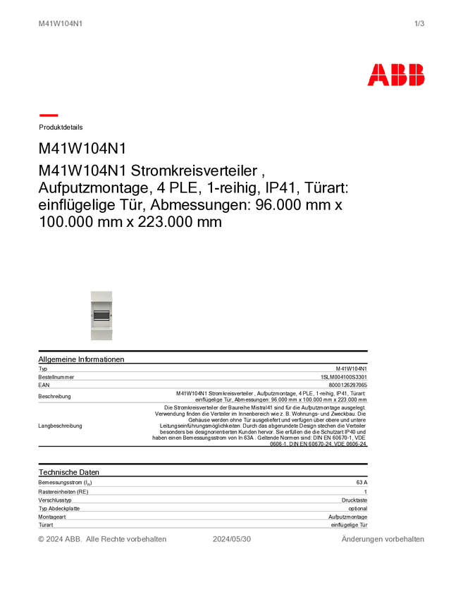 Striebel & John 1SLM004100S3301 M41W104N1 Dystrybutor obwodów nadtynkowy Ilość rzędów = 1 Content 1 szt.