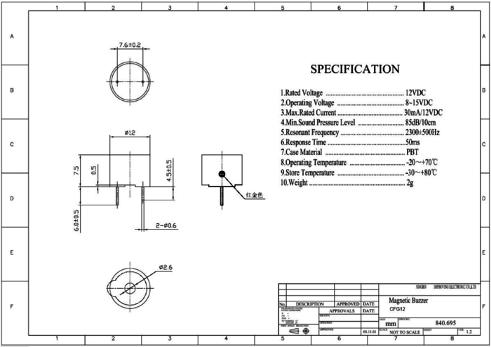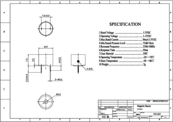 Sygnalizator z obwodem generatora, 1.5V DC