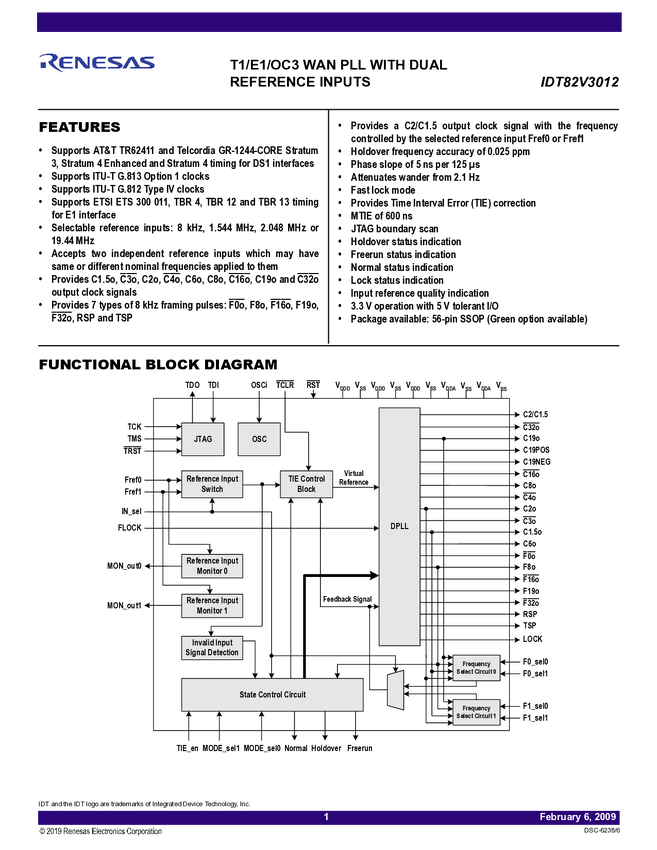 Enhanced T1/E1/OC3 WAN PLL With Dual Reference Inputs