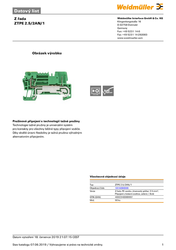 Weidmüller 1815080000 Zacisk przewodu ochronnego żółto-zielony 50 szt.
