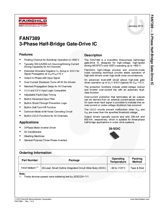625V, 3.3/5V input logic compatible, 0.65/0.35A sink/source current, 3-Phase Half-Bridge Gate-Drive IC with OCP/Shutdown protection