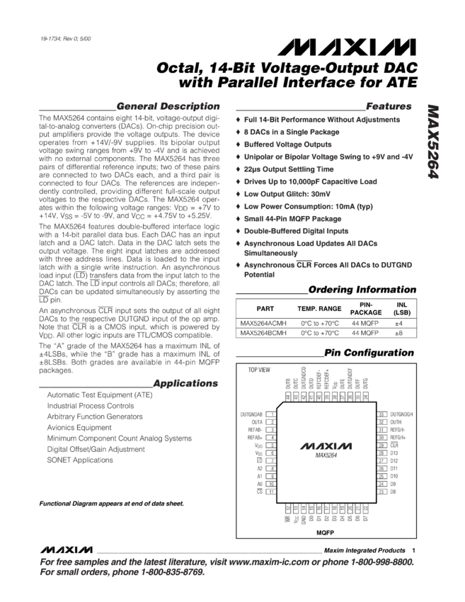 MAX5264 Octal, 14-Bit, Voltage-Output DAC with Parallel Interface for ATE