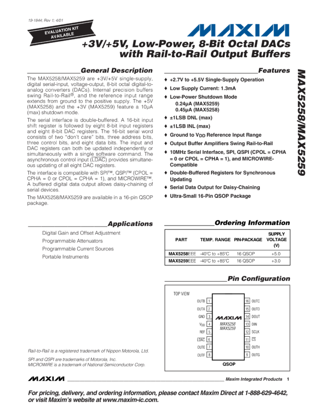 MAX5258, MAX5259 +3V/+5V, Low-Power, 8-Bit Octal DACs with Rail-to-Rail Output Buffers