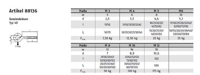 Śruba oczkowa z pierścieniem Toolcraft, M5, długość: 20 mm, stal ocynkowana, 50 szt.