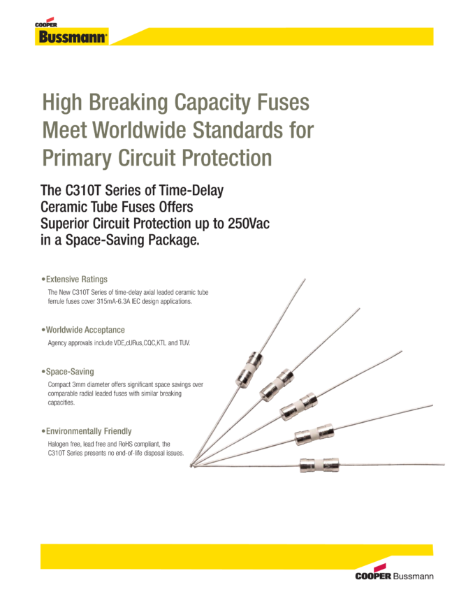 Bezpiecznik ceramiczny THT, , 250VAC, 3.6x10, zwłoczny, Bussmann by Eaton