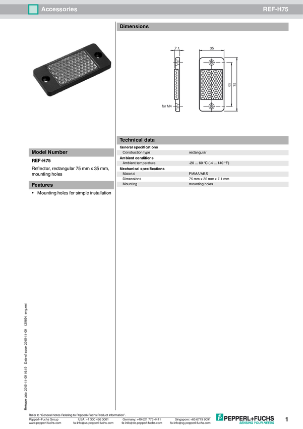 Odbłyśnik Pepperl+Fuchs REF-H75 129694 5 szt.