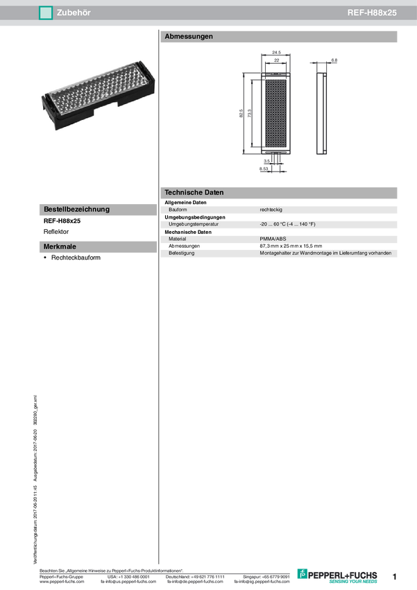 Pepperl+Fuchs 302280 Odbłyśnik REF-H88x25 1 szt.