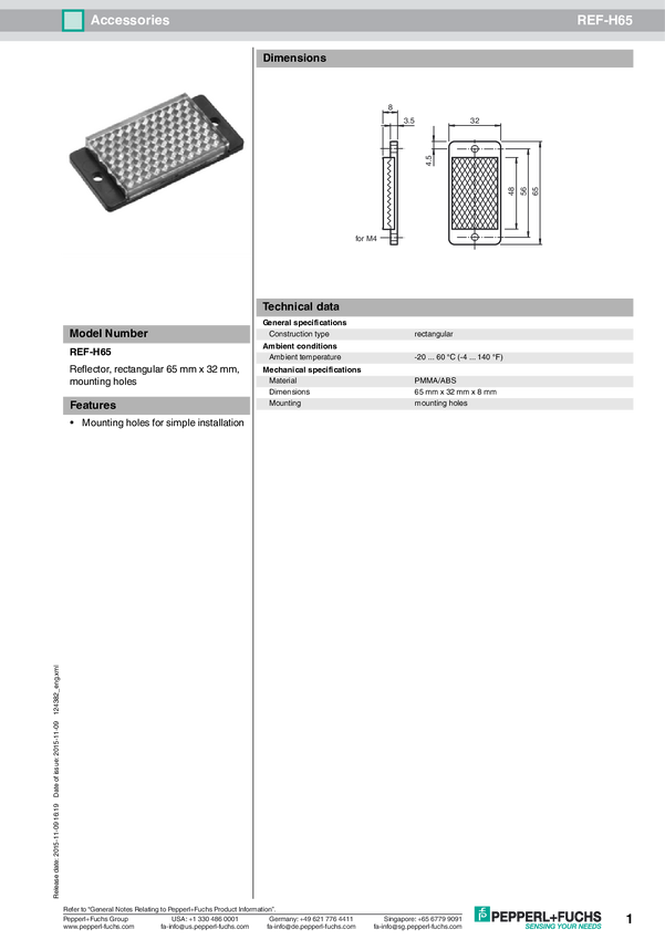 Odbłyśnik Pepperl+Fuchs REF-H65 124382 5 szt.