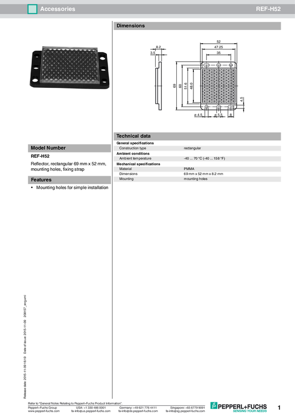 Odbłyśnik Pepperl+Fuchs REF-H52 208157 5 szt.