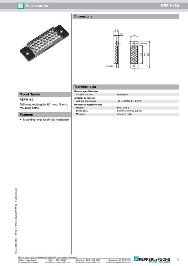 Odbłyśnik Pepperl+Fuchs REF-H160 113945 5 szt.