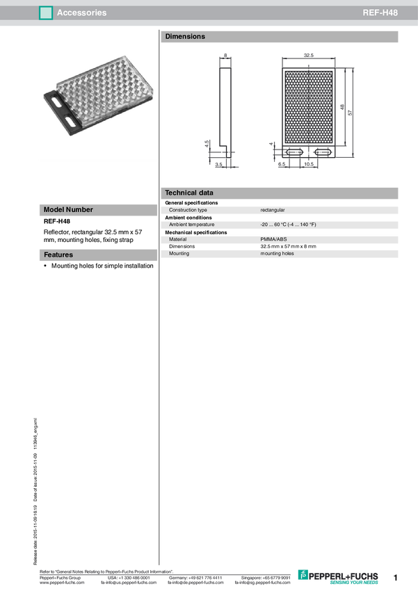 Odbłyśnik Pepperl+Fuchs REF-H48 113946 5 szt.