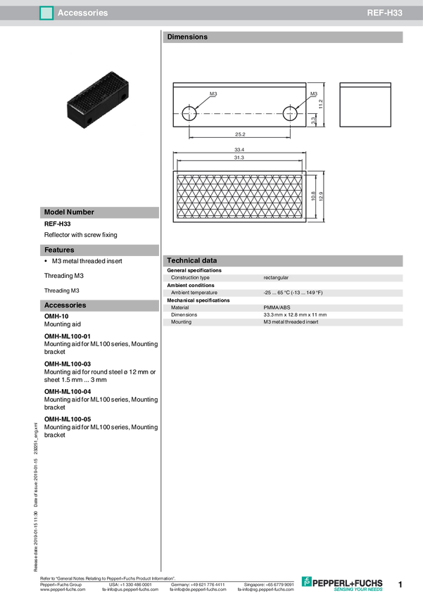 Odbłyśnik Pepperl+Fuchs REF-H33 232251 5 szt.