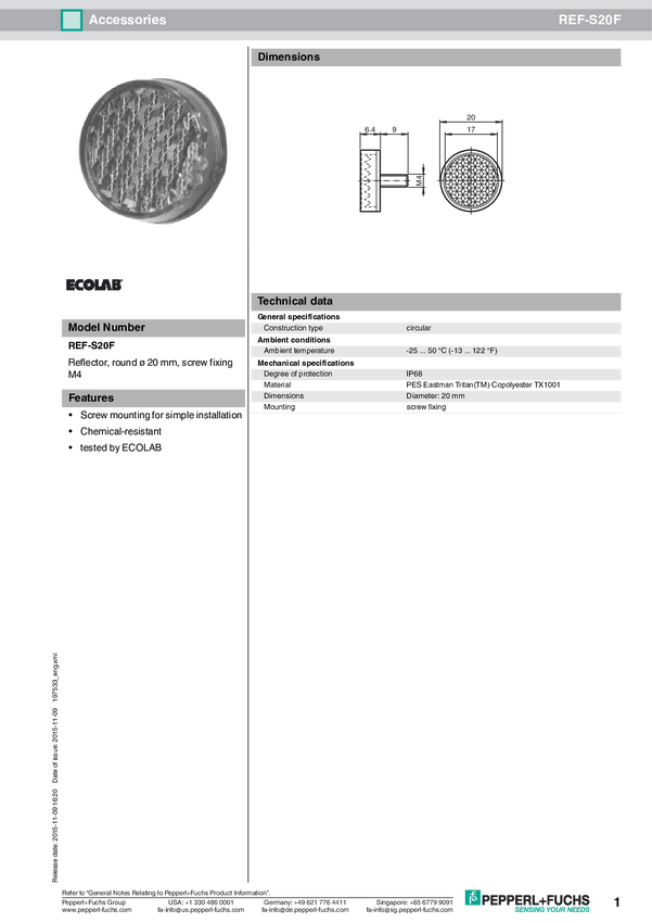 Odbłyśnik Pepperl+Fuchs REF-S20F 197533 5 szt.