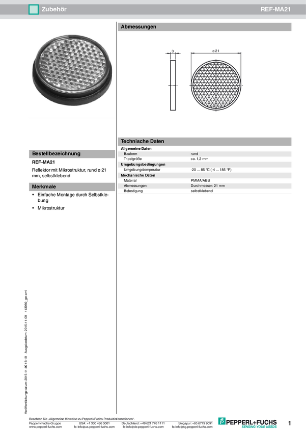 Pepperl+Fuchs 113960 Odbłyśnik REF-MA21 1 szt.