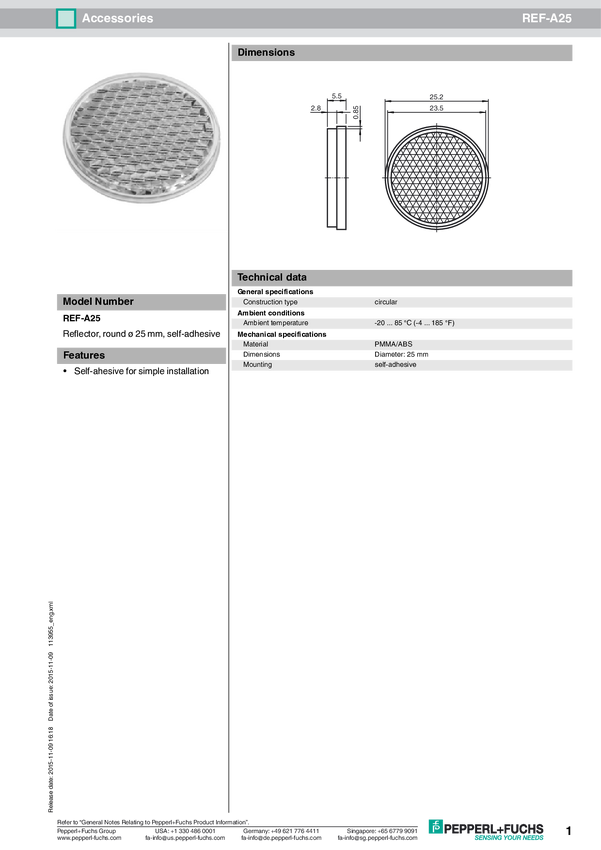 Odbłyśnik Pepperl+Fuchs REF-A25 113955 5 szt.