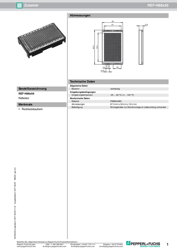 Pepperl+Fuchs 302281 Odbłyśnik REF-H88x50 1 szt.