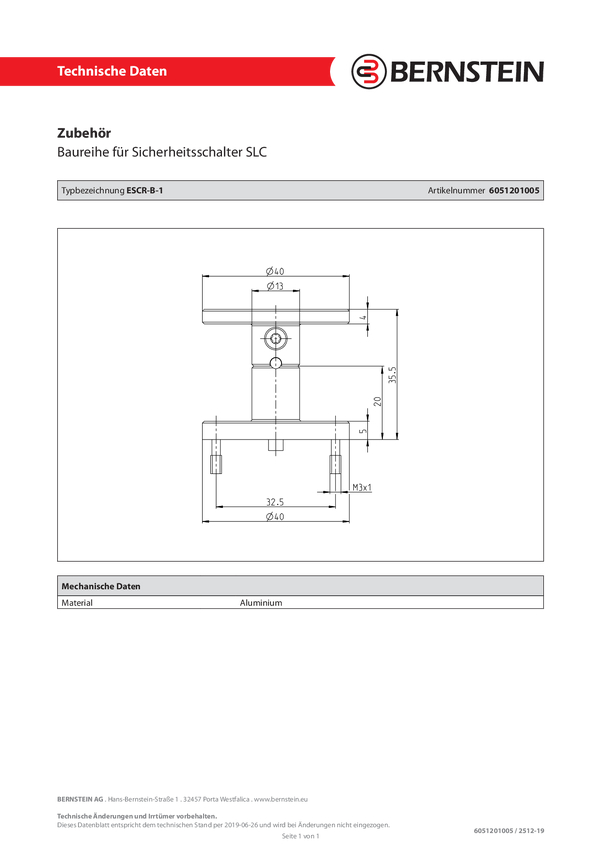 Bernstein 6051101004 EMR-B-1 Odblokowanie awaryjne 1 szt.