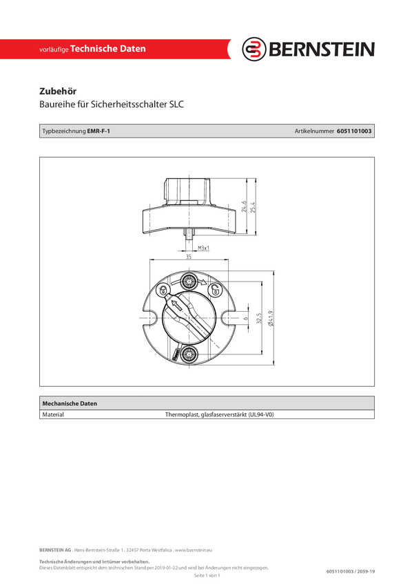 Bernstein 6051101003 EMR-F-1 Odblokowanie awaryjne 1 szt.